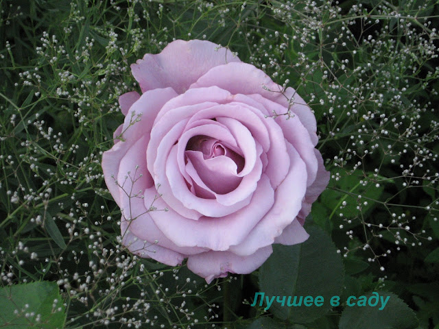 раскрывается роза сорта Голубой Нил. Сейчас, когда смотрим эти кадры, теплеет