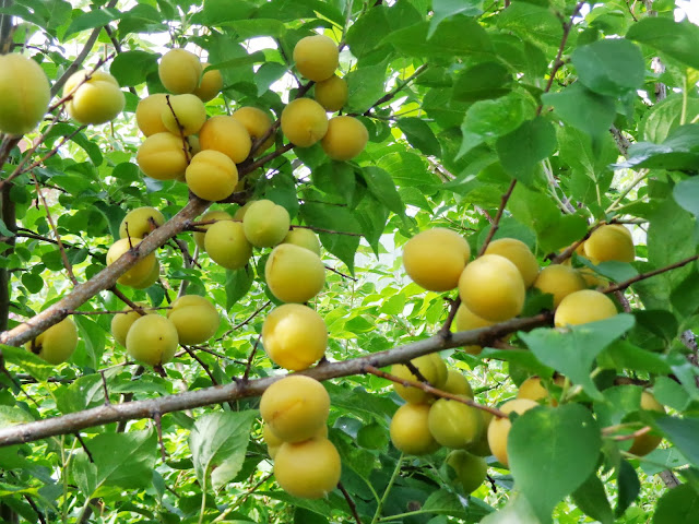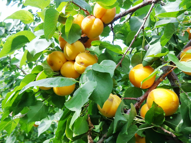 фото абрикосов, которые еще не упали. Жаль, что плоды уже съеденных 4-х сортов мы не запечатлели. Нужно
