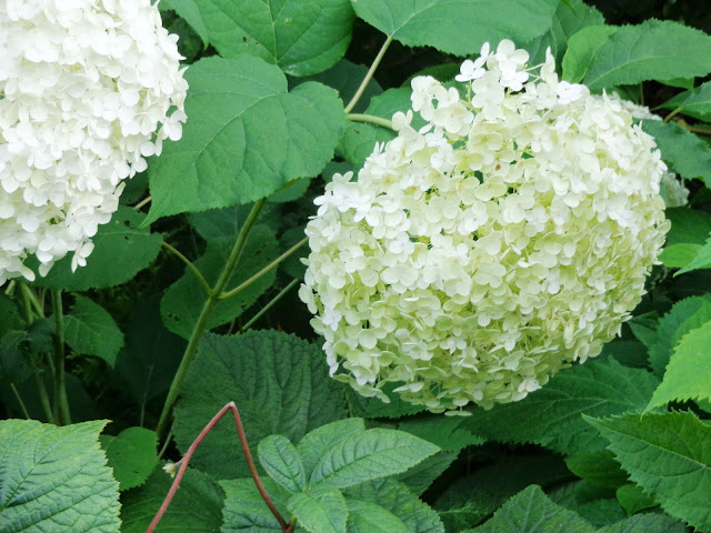 Этим дождливым летом листья у гортензии Аннабель, ставшей уже привычной в наших садах, размером с хорошую мужскую ладонь.