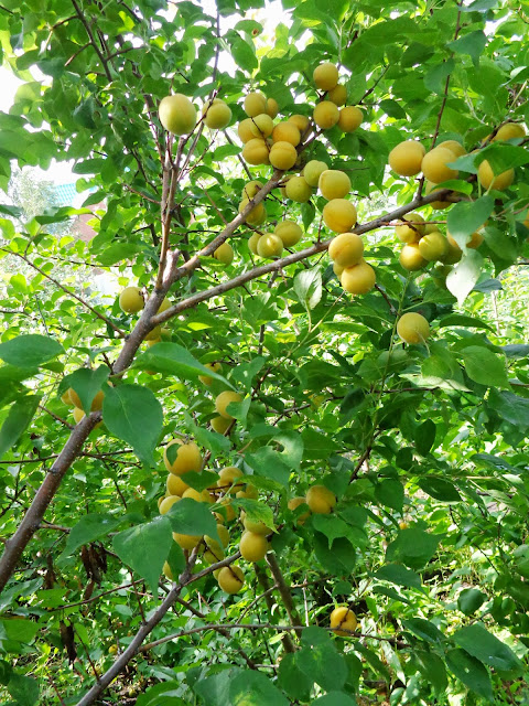 - абрикосов сорта Лефко, остались последние веточки с поспевающими плодами. Этот